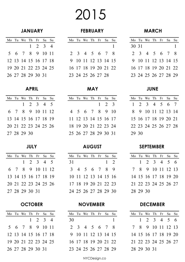 2015 Calendar, Printable Free