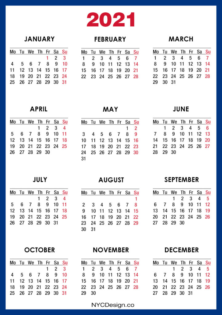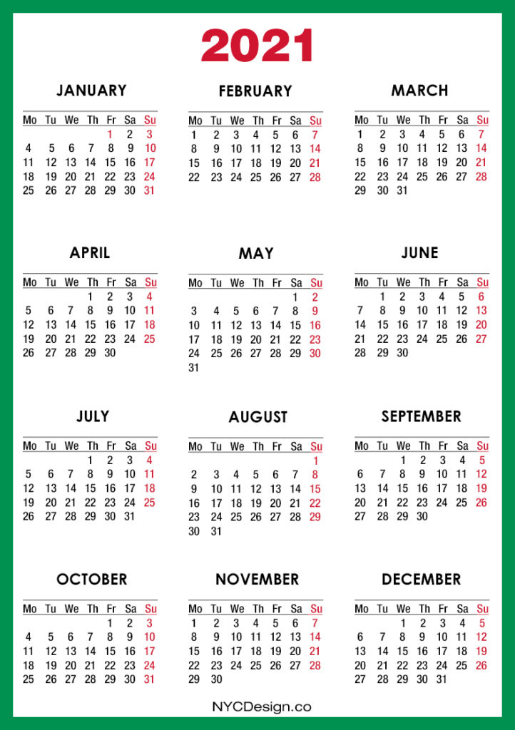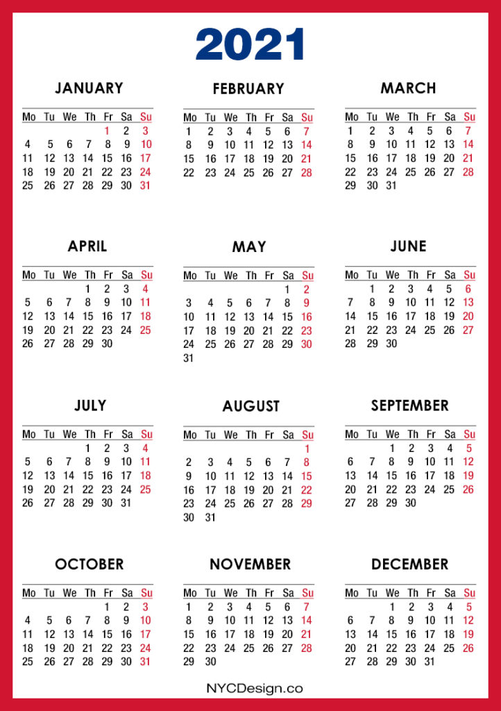 2021 Calendars• Calendars• Monday Start• Printable Calendars 2021 Calendar Printable Free, Red – Monday Start 2019-08-232022-08-04
