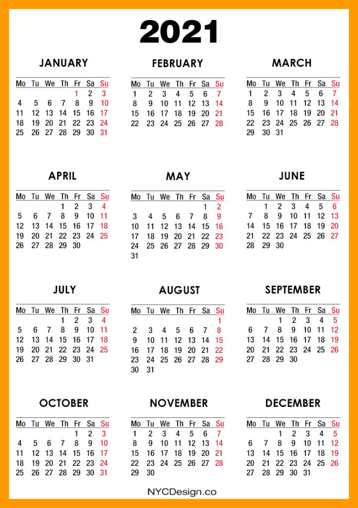 2021 Calendars• Calendars• Monday Start• Printable Calendars 2021 Calendar Printable Free, Orange, Yellow – Monday Start 2019-08-232022-08-04