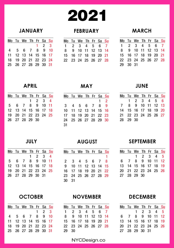 2021 Calendars• Calendars• Monday Start• Printable Calendars 2021 Calendar Printable Free, Pink – Monday Start 2019-08-232022-08-04