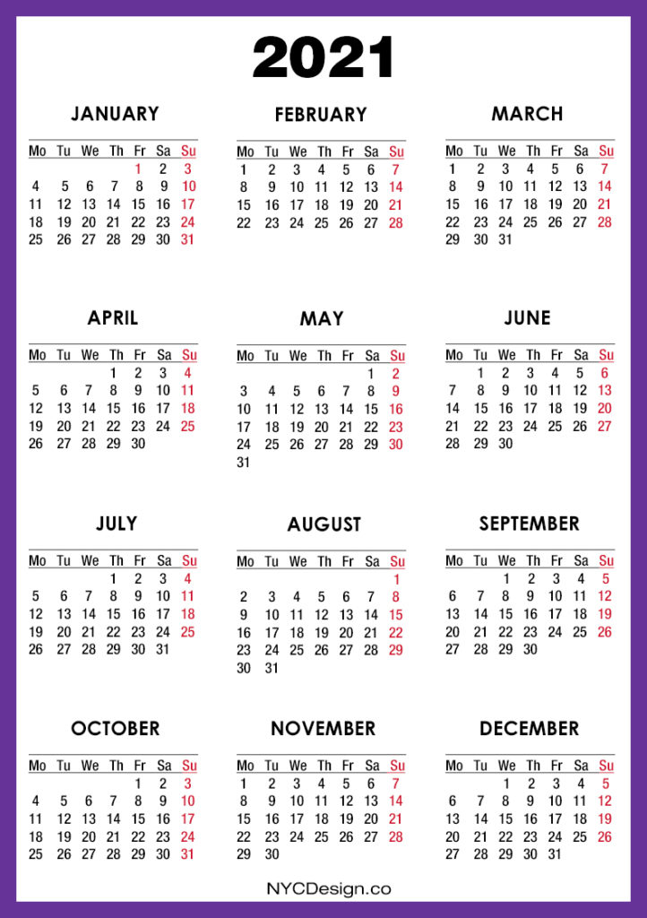2021 Calendars• Calendars• Monday Start• Printable Calendars 2021 Calendar Printable Free, Purple – Monday Start 2019-08-232022-08-04