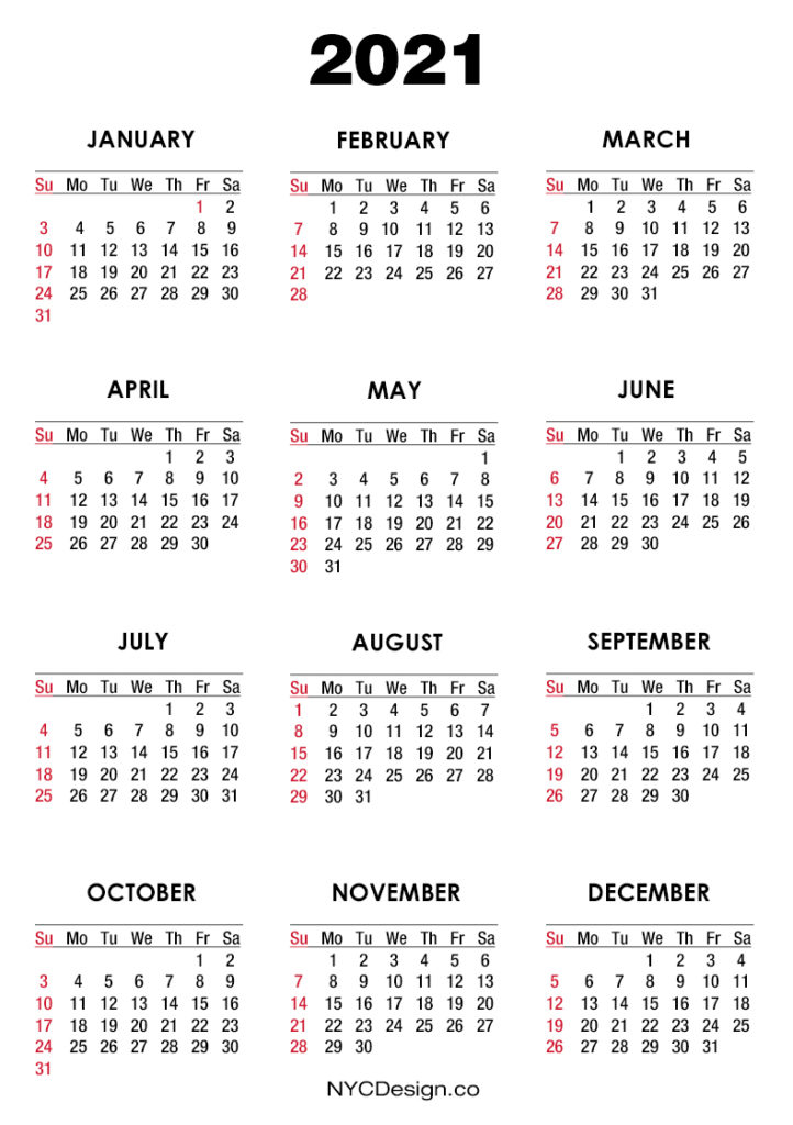 2021 Calendars• Printable Calendars• Sunday Start 2021 Calendar PDF – Printable, White, SS 2019-09-032022-08-04