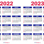 2022 – 2023 Two Year Calendar Printable Free, Colorful, White, Red, Black