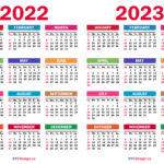 2022 – 2023 Two Year Calendar with UK Holidays, Printable Free, Blue, Green