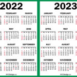 2022 – 2023 Two Year Calendar with US Holidays, Printable Free, Blue