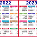2022 – 2023 Calendar with United States Holidays – Colorful, Blue