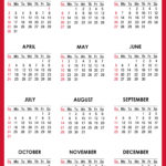 2022 Calendar Printable – White, Red