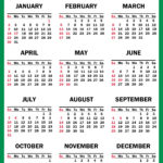 Yearly Calendar at a Glance – Calendar with US Holidays