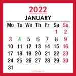 2022 Monthly Calendar with UK Holidays – January