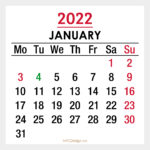 2022 Monthly Calendar with UK Holidays, Printable Free – Red