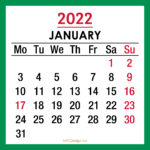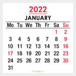 2022 Monthly Calendar with US Holidays – January
