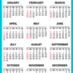 Yearly Calendar at a Glance – Calendar with US Holidays
