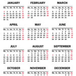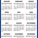 Yearly Calendar at a Glance – Calendar with US Holidays