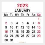 2023 Monthly Calendar with UK Holidays – January