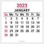 2023 Monthly Calendar with US Holidays – January