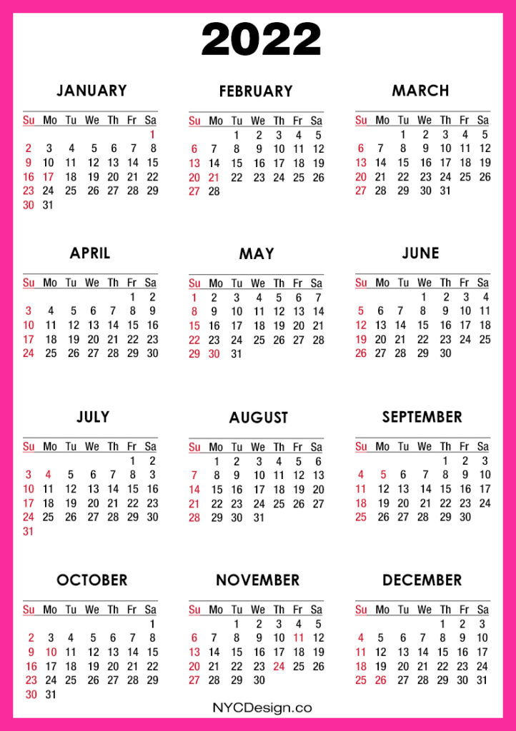 2022 Calendars• Calendars• Calendars with Holidays• Sunday Start• United States 2022 Calendar with US Holidays, Printable Free, Pink – Sunday Start 2020-09-132022-08-04