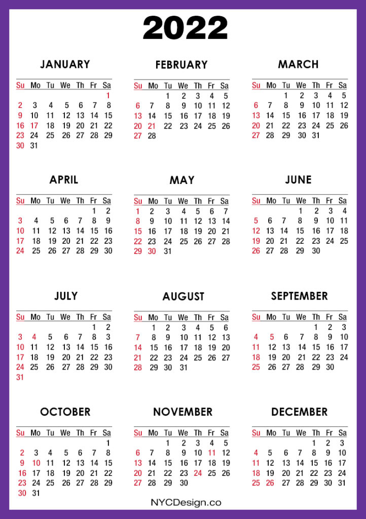 2022 Calendars• Calendars• Calendars with Holidays• Sunday Start• United States 2022 Calendar with US Holidays, Printable Free, Purple – Sunday Start 2020-09-132022-08-04