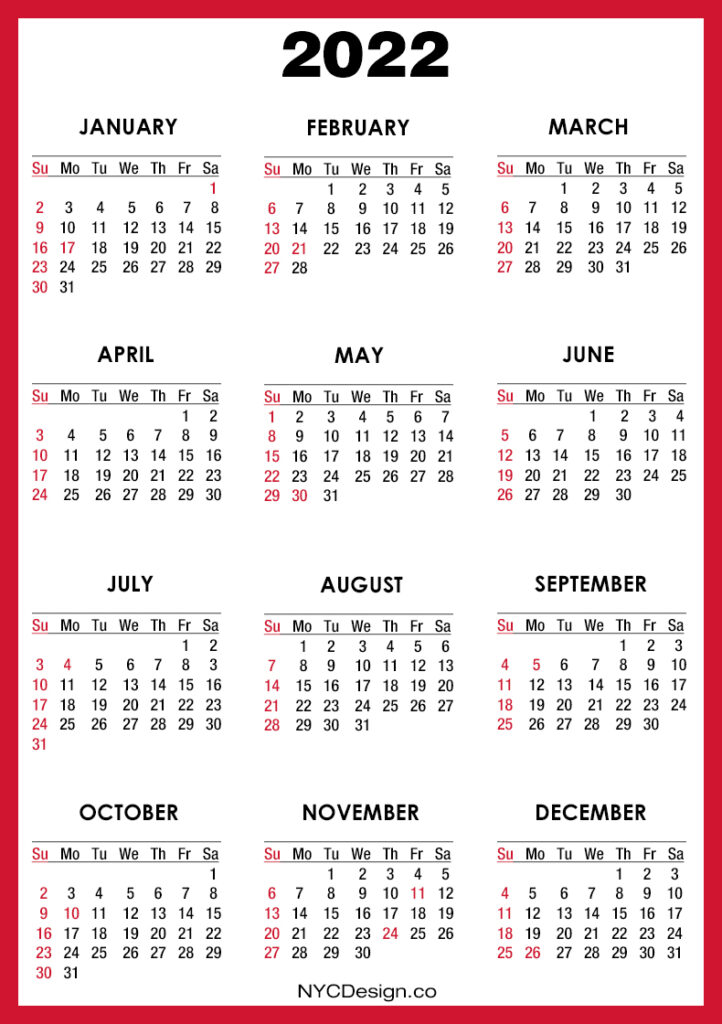 2022 Calendars• Calendars• Calendars with Holidays• Sunday Start• United States 2022 Calendar with US Holidays, Printable Free, Red – Sunday Start 2020-09-132022-08-04