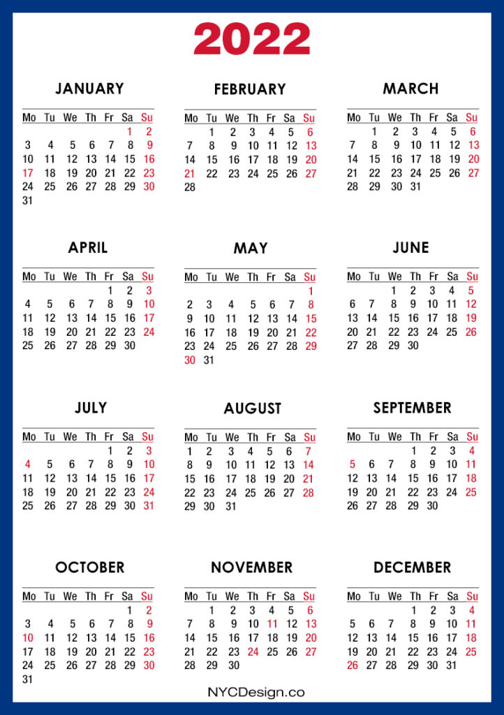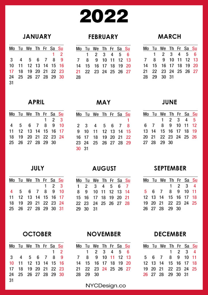 2022 Calendars• Calendars• Calendars with Holidays• Monday Start• United States 2022 Calendar with US Holidays, Printable Free, Red – Monday Start 2020-09-122022-08-04