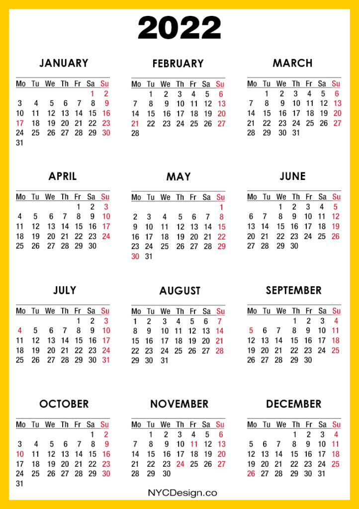 2022 Calendars• Calendars• Calendars with Holidays• Monday Start• United States 2022 Calendar with US Holidays, Printable Free, Orange, Yellow – Monday Start 2020-09-122022-08-04