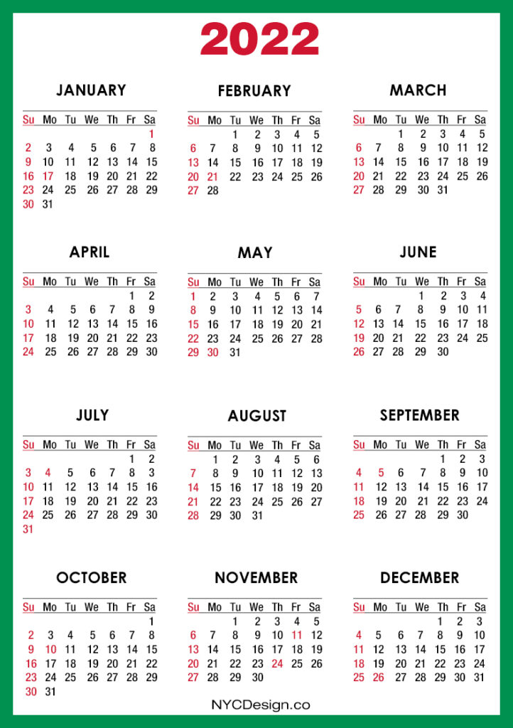 2022 Calendars• Calendars• Calendars with Holidays• Sunday Start• United States 2022 Calendar with US Holidays, Printable Free, Green – Sunday Start 2020-09-132022-08-04