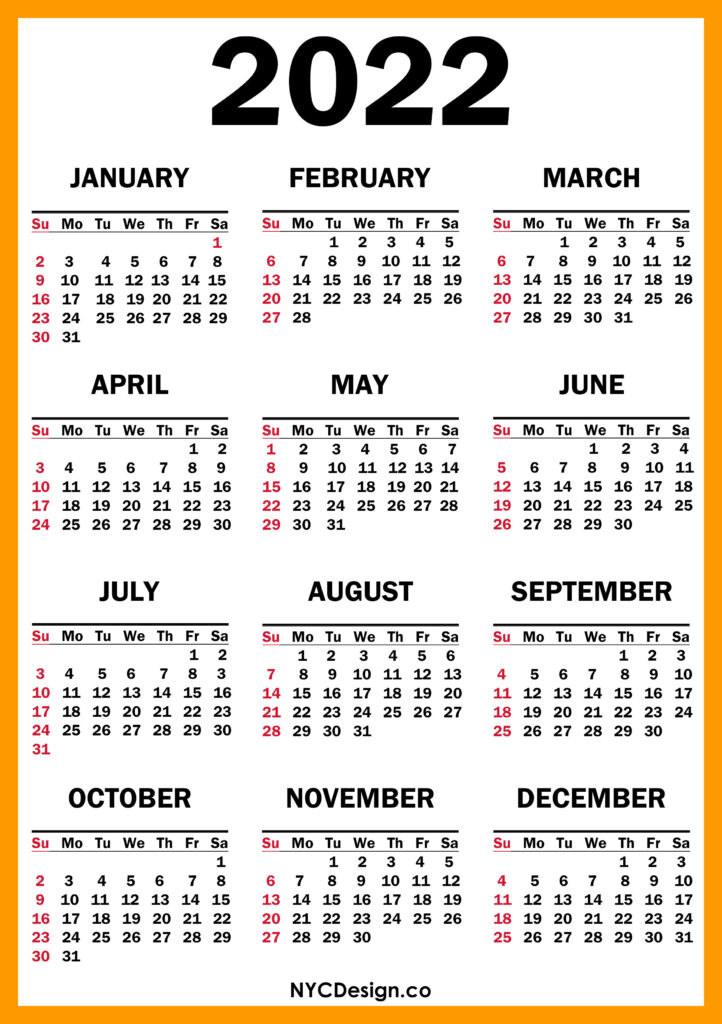 2022 Calendars• Calendars• Printable Calendars• Sunday Start 2022 Calendar Printable Free, Orange – Sunday Start 2021-09-282022-08-04