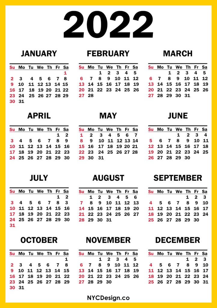 2022 Calendars• Calendars• Printable Calendars• Sunday Start 2022 Calendar Printable Free, Yellow – Sunday Start 2021-09-282022-08-04
