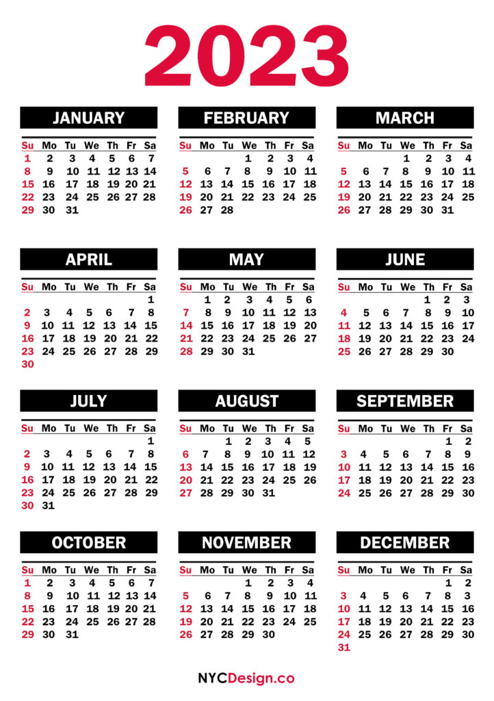 2023 Calendars• Calendars• Printable Calendars• Sunday Start• Sunday Start• Yearly Calendars 2023 Calendar Printable Free, PDF, Red – SS 2021-11-052022-08-04