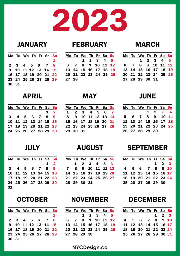 2023 Calendars• Calendars• Monday Start• Printable Calendars 2023 Calendar Printable Free, Green – Monday Start 2021-11-042022-08-04