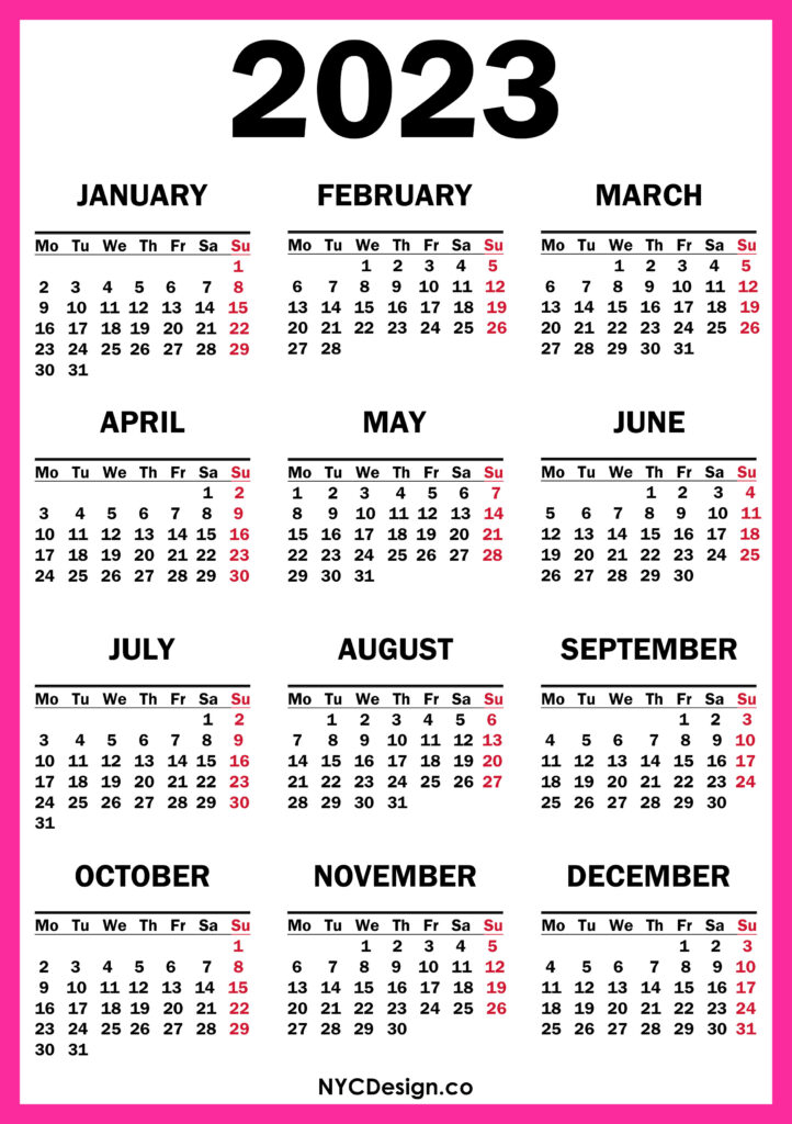 2023 Calendars• Calendars• Monday Start• Printable Calendars 2023 Calendar Printable Free, Pink – Monday Start 2021-11-042022-08-04