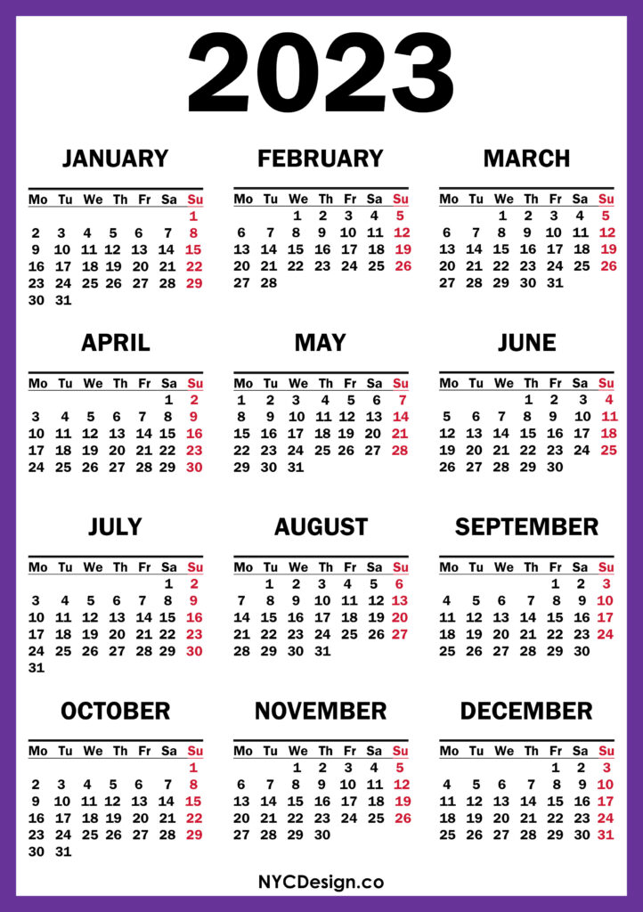 2023 Calendars• Calendars• Monday Start• Printable Calendars 2023 Calendar Printable Free, Purple – Monday Start 2021-11-042022-08-04