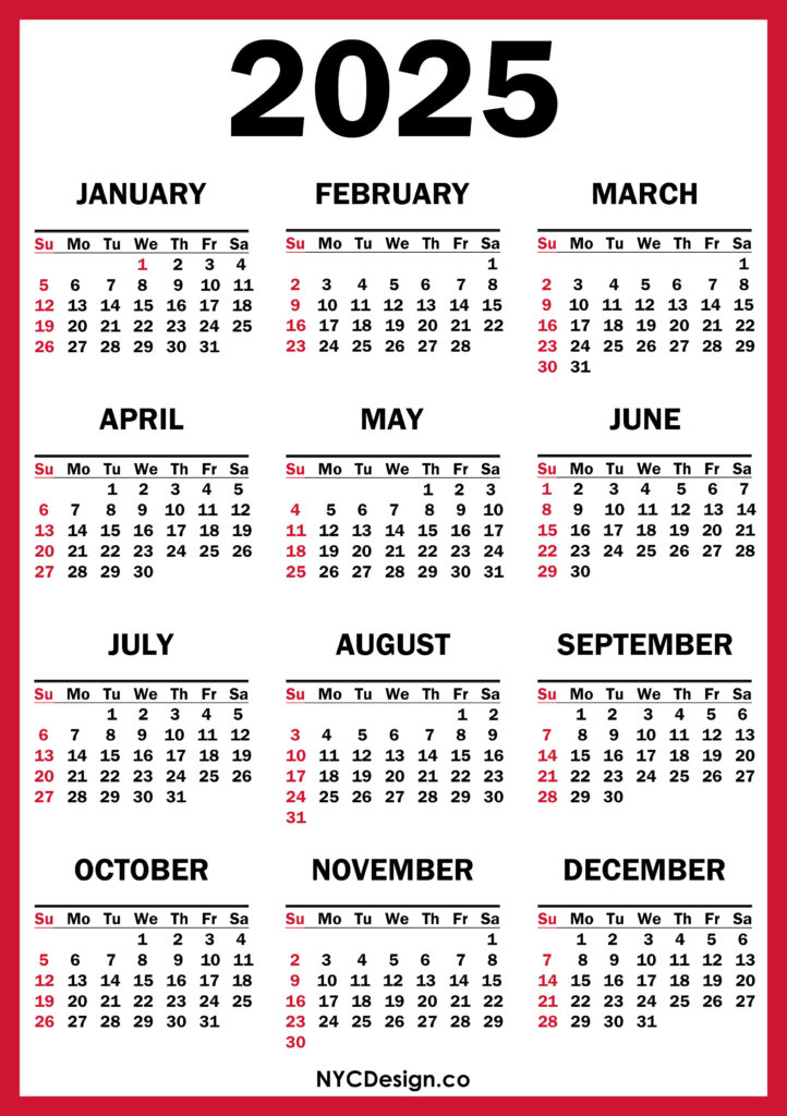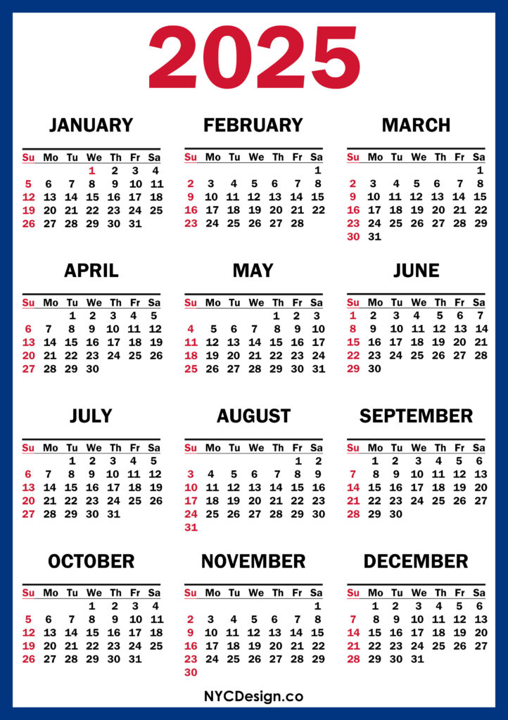2025 Calendars• Calendars• Printable Calendars• Sunday Start 2025 Calendar Printable Free, Blue, Red – Sunday Start 2021-11-242022-08-04