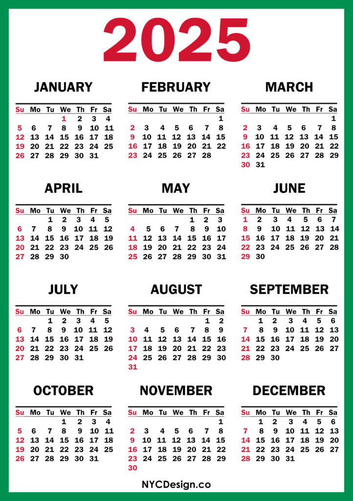 2025 Calendars• Calendars• Printable Calendars• Sunday Start 2025 Calendar Printable Free, Green, Red – Sunday Start 2021-11-242022-08-04