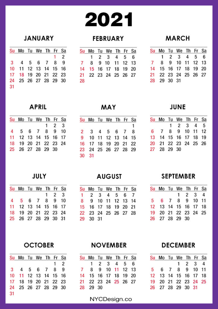 2021 Calendars• Calendars• Printable Calendars• Sunday Start 2021 Calendar with US Holidays, Printable Free, Purple – Sunday Start 2020-03-012022-08-04