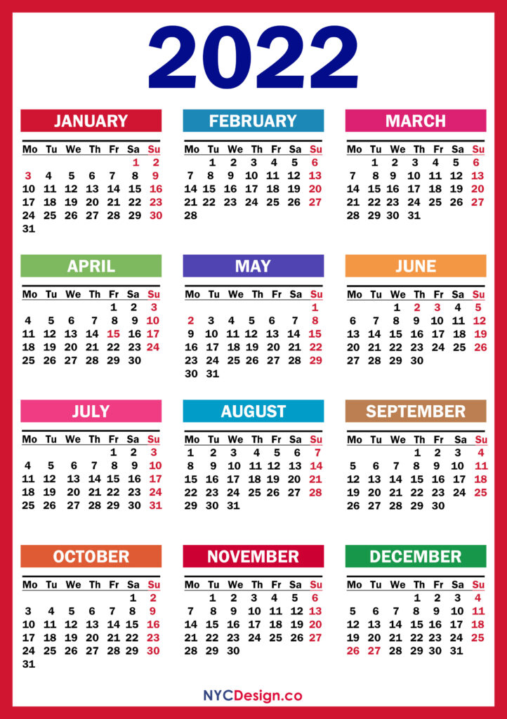 2022 Calendars• Calendars• Calendars with Holidays• Monday Start• United Kingdom• Yearly Calendars 2022 Calendar with UK Holidays, Printable, Free, PDF, Colorful 2021-10-082022-08-04