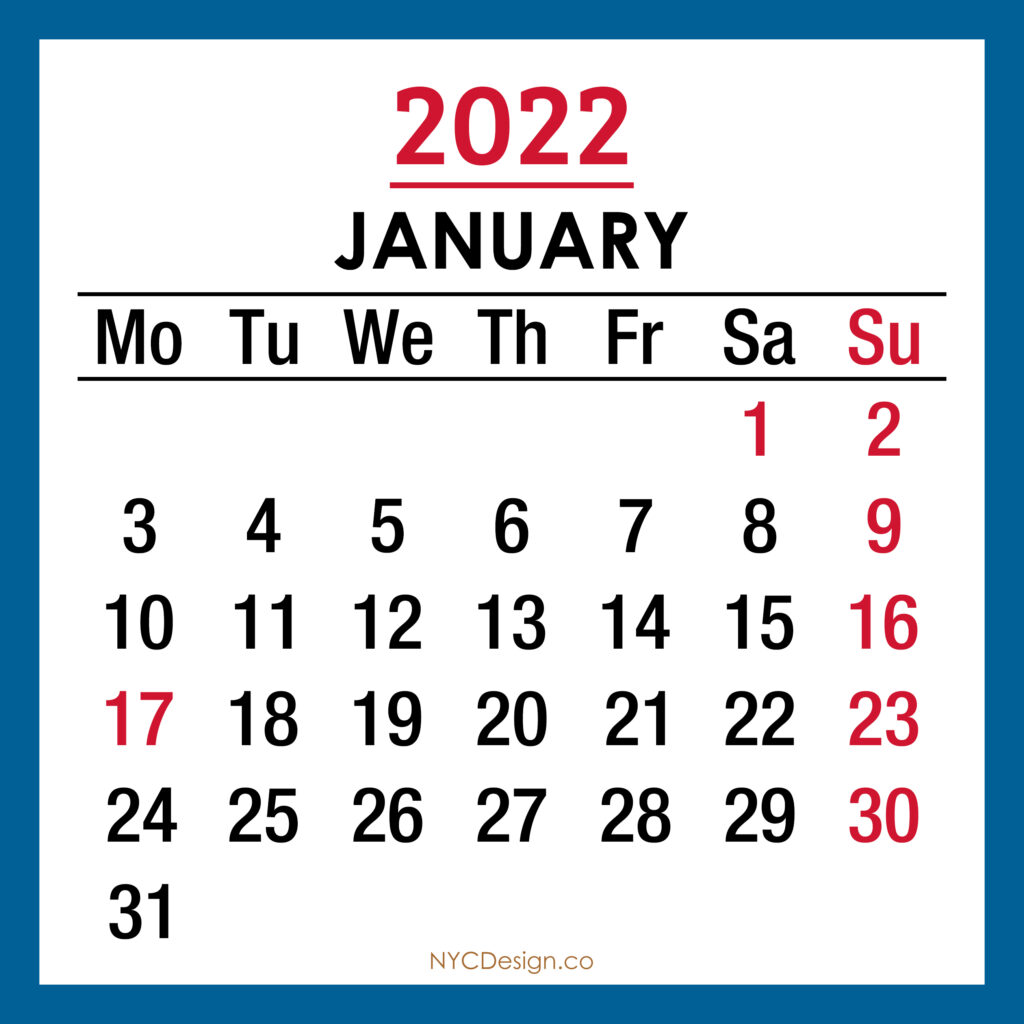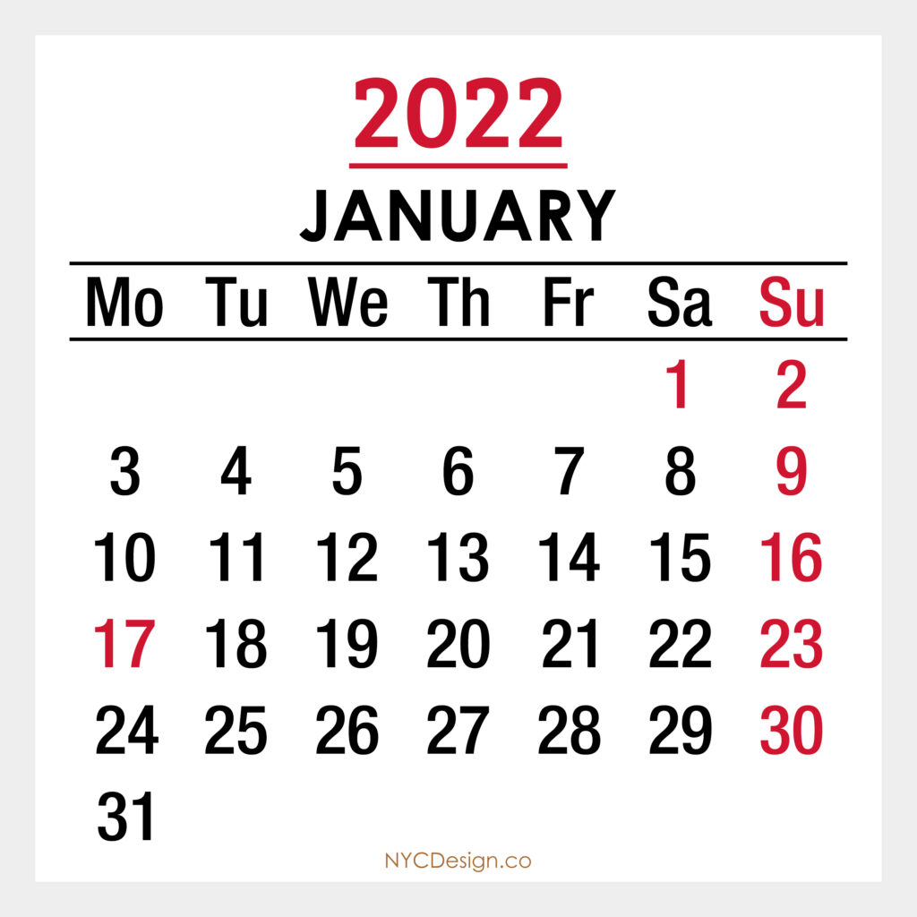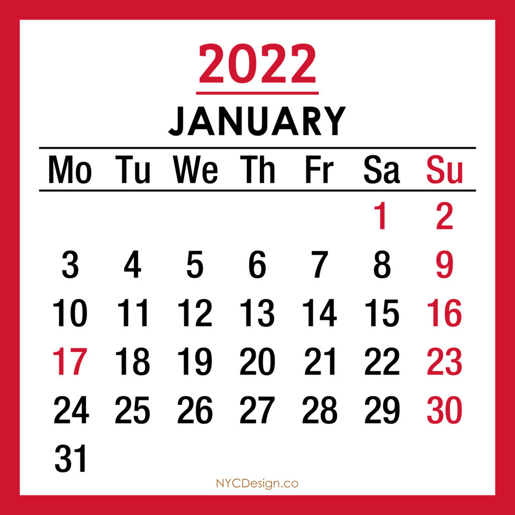 2022 Calendars• Calendars• Monday Start• Monthly Calendars 2022 Monthly Calendar with USA Holidays, Printable Free – Monday Start, Red 2020-10-172022-08-04
