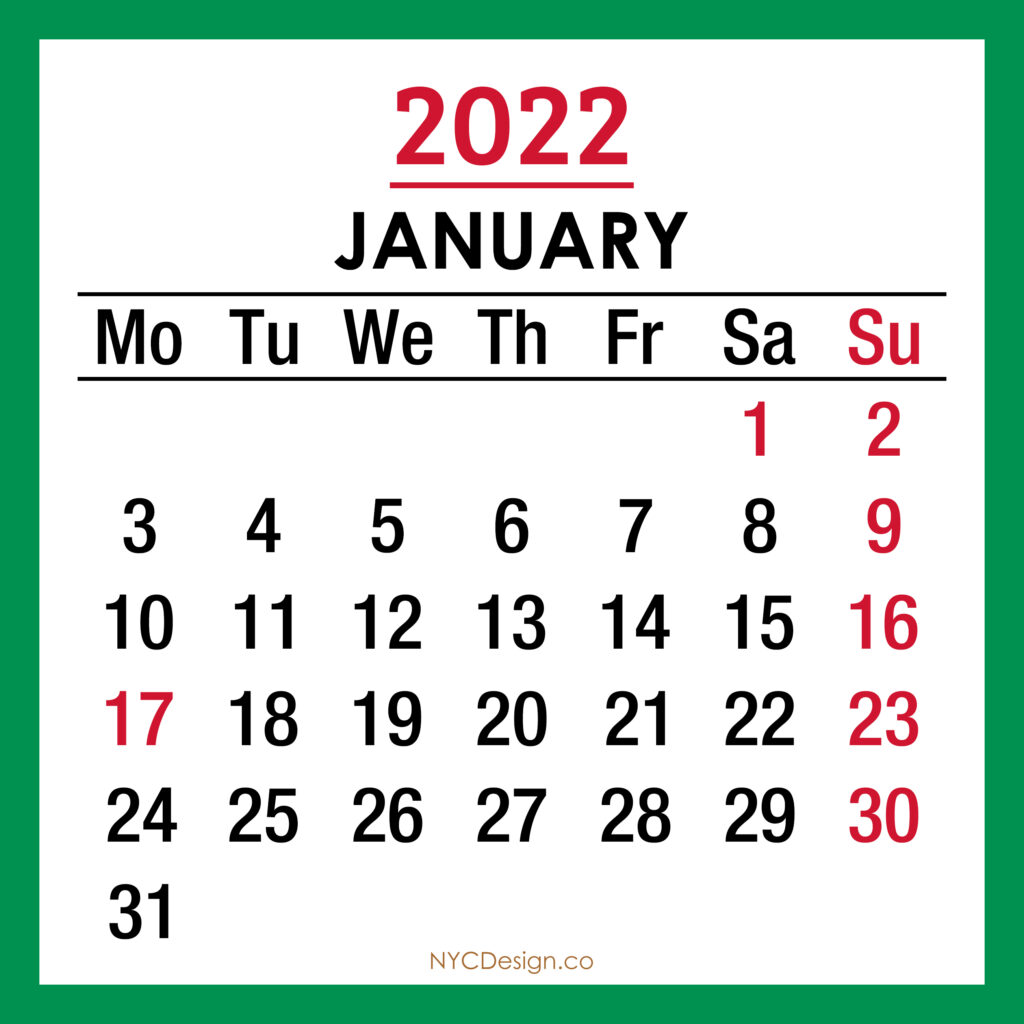 2022 Calendars• Calendars• Monday Start• Monthly Calendars 2022 Monthly Calendar with USA Holidays, Printable Free – Monday Start, Green 2020-10-172022-08-04