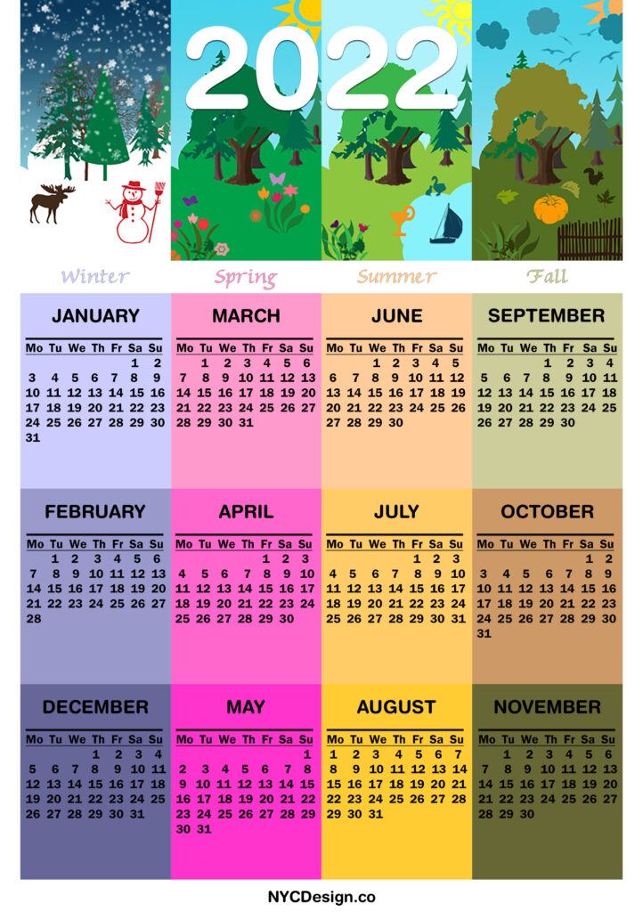 2022 Calendars• 4 Seasons Calendars• Calendars• Monday Start 2022 Calendar, 4 Seasons Calendar, Printable, Free – Monday Start 2021-10-022022-08-04