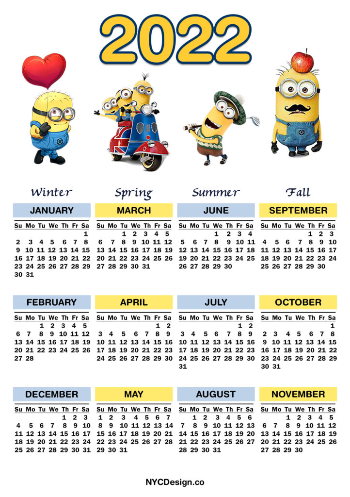 2022 Calendars• Calendars• Minions Calendars• Sunday Start 2022 Calendar Printable Free, Minions Calendar – Sunday Start 2021-09-272022-08-04