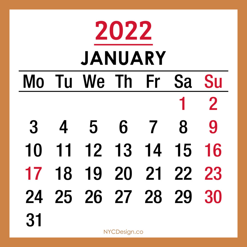 2022 Calendars• Calendars• Monday Start• Monthly Calendars 2022 Monthly Calendar with USA Holidays, Printable Free – Monday Start, Red 2020-10-172022-08-04