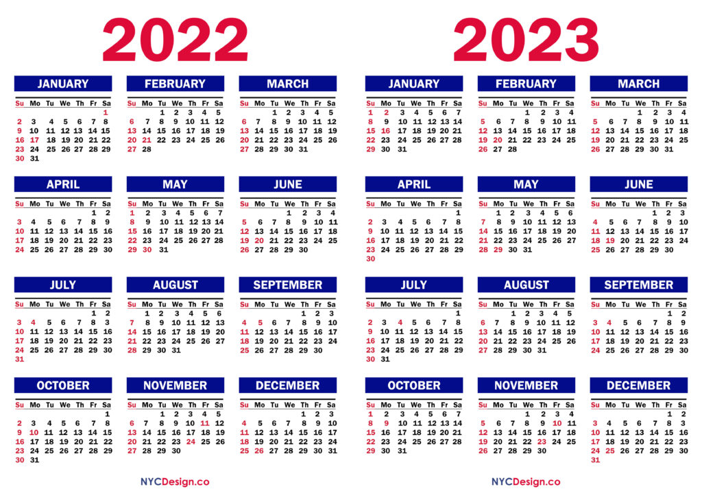 Calendars• Monday Start• Sunday Start• Two Year Calendars 2022 – 2023 Two Year Calendar with US Holidays, Printable Free, Colorful, White, Blue, Green 2021-11-062022-08-04