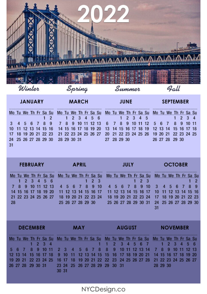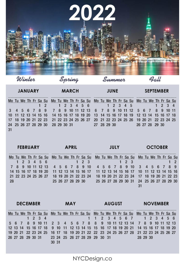 2022 Calendars• Calendars• Monday Start• Wall Calendars 2022 Calendar Printable Free, NYC Calendar – Monday Start 2020-09-132022-08-04